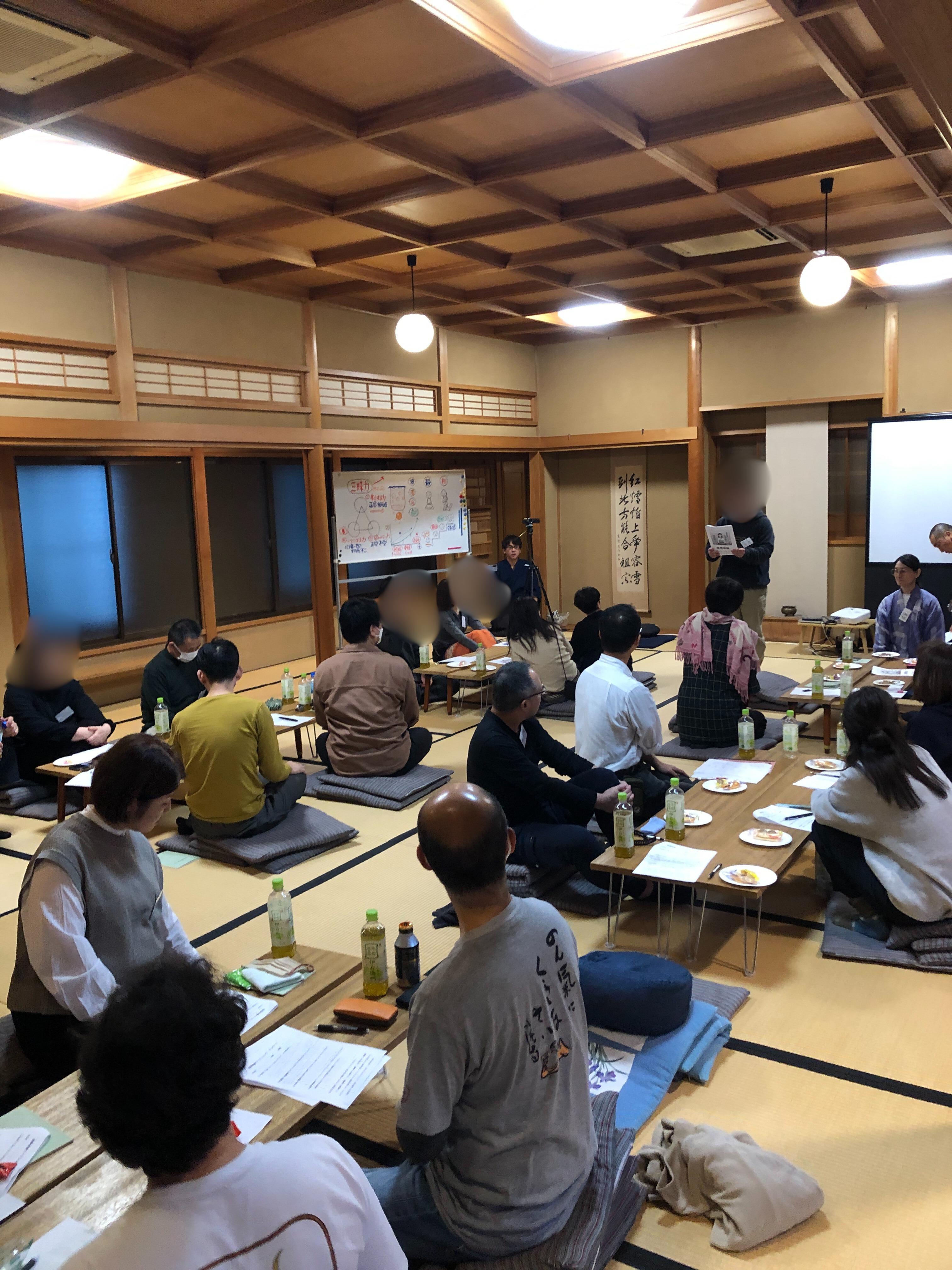 | 内容とスケジュール | 12:30~ 受付 13:00~13:30 オープニング 13:30~14:25 座禅 14:40~15:15 茶道体験 15:30~16:00 座禅 16:10~16:50 座談会 振り返り共有 16:50~17:00 アンケート記入 終了、撤収 |